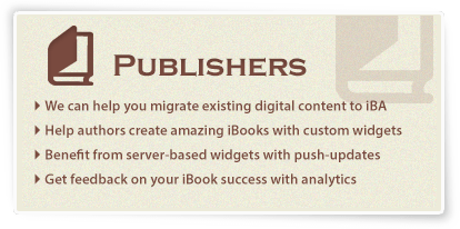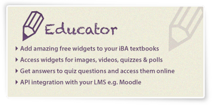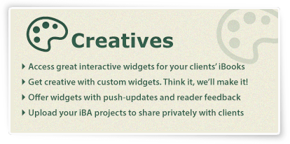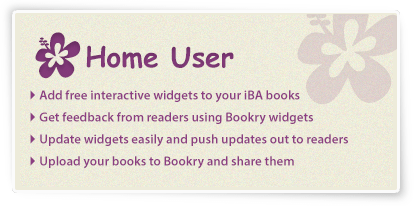 Create your own customized HTML 5 widgets using our simple online generator then drag and drop into iBooks Author. Bookry widgets let you engage, challenge, entertain and interact with your readers like never before. Readers can play games, solve puzzles, draw pictures and save any data they enter into your widgets to the cloud. They can also share their data with others by email,Twitter, Facebook and Evernote.
